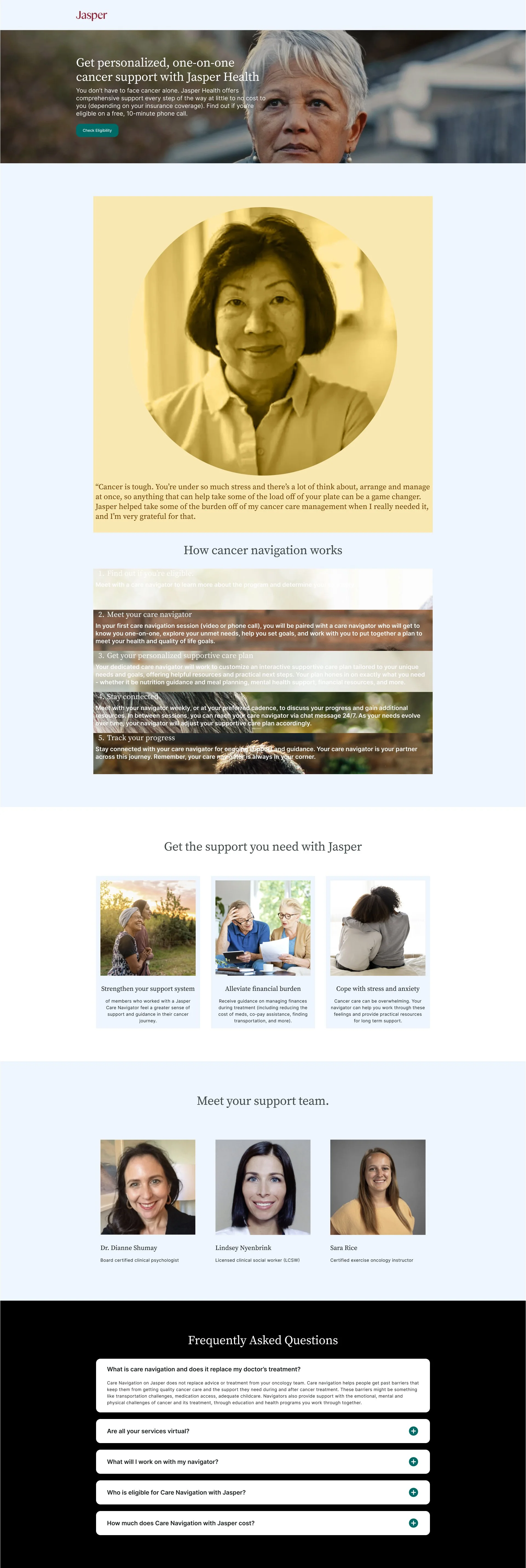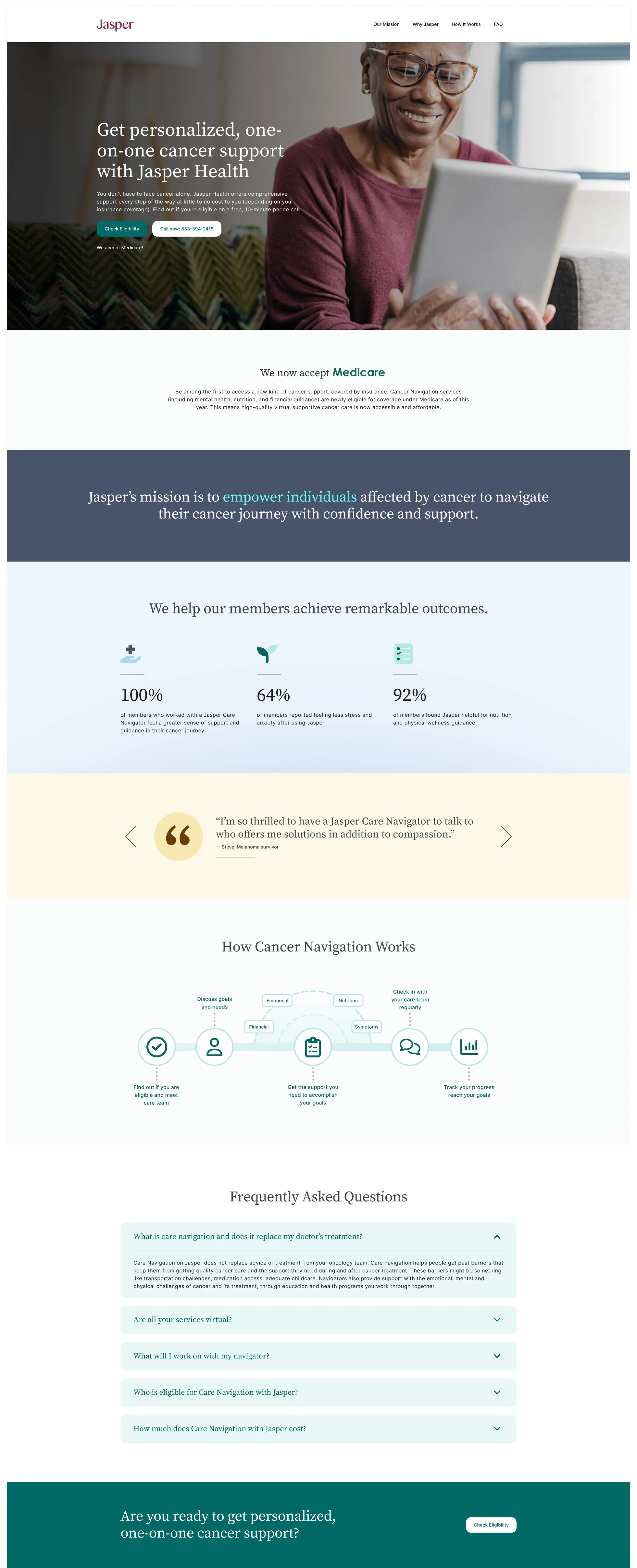 Back in January, the White House officially announced that care navigation services like Jasper Health can be reimbursed by Medicare. A landing page was then developed, without any design input in hopes to generate leads and conversions to use our navigation services.
