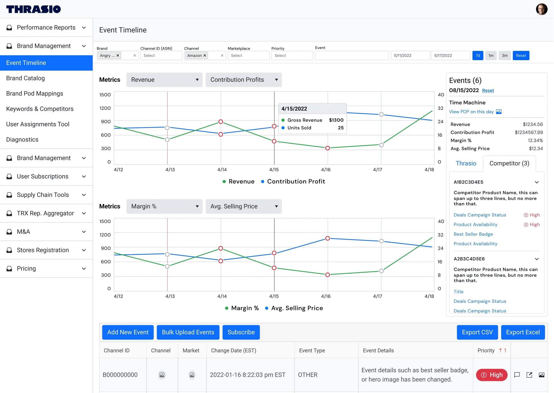 Brand managers were able to receive alerts on specific or all historical events for both their assigned product and the competitor ASIN, if desired.
