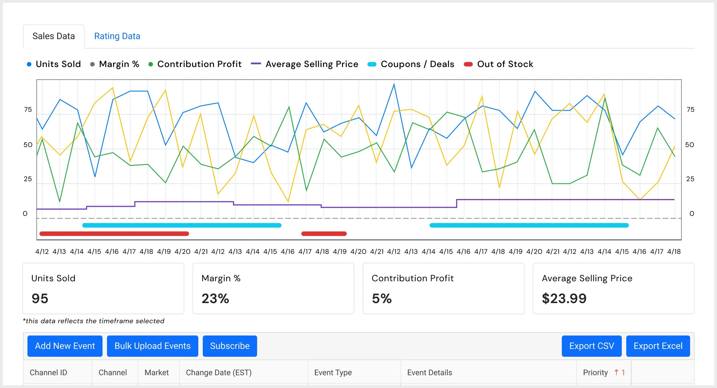 Event Timeline Dashboard for Tracking Product SKUs